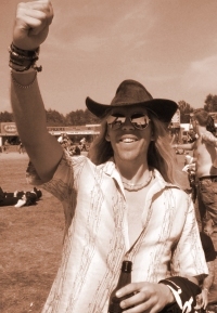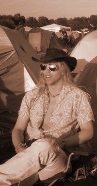 How do I look then? Well, I have long blondish hair and am, if I remember correctly, about 183 cm tall. As for clothes, I usually wear just t-shirts (usually band tees) or some hippie-ish shirt, and a pair of somewhat tight blue jeans to go with that, preferably bell-bottomed such. Can you tell I'm a sucker for all things late '60's and early '70's..? ;)